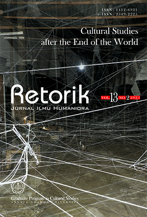 Retorik: Jurnal Ilmu Humaniora is an open-access, peer-reviewed interdisciplinary journal of humanities published by the Graduate Program in Cultural Studies, Sanata Dharma University, Yogyakarta, Indonesia. Retorik is a bilingual journal, and publishes articles in Bahasa Indonesia and English. Founded in 2001 with the aim of seeking a new scientific ethos in the humanities, Retorik has published original articles that attempt to understand and problematize the contemporary world by drawing from various strands of thought in cultural studies, philosophy, psychoanalysis, political economy, religious studies, art history, critical pedagogy, gender studies, and postcolonial studies. In terms of content, Retorik does not shy away from non-traditional approaches and cutting-edge research. In terms of tone, Retorik embraces a certain spirit of agon: authors are encouraged to not be afraid of “naming the enemy” or going against the current as they argue for their position.Journal Title : Retorik: Jurnal Ilmu Humaniora Frequency : 2 issues per year | June and December DOI : https://doi.org/10.24071/ret ISSN : 2549-2225 (Online) | 1412-6931 (Print) Editor in Chief : Min Seong Kim Publisher : Graduate Program in Cultural Studies, Sanata Dharma University Indexing : DOAJ, SINTA, Google Scholar -