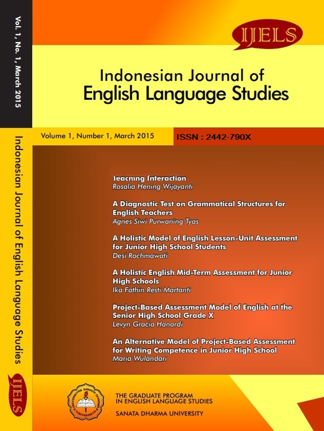 The first volume of IJELS contains selected articles of English Education Majoring. This issue is previously published in IJELS's OJS 2.